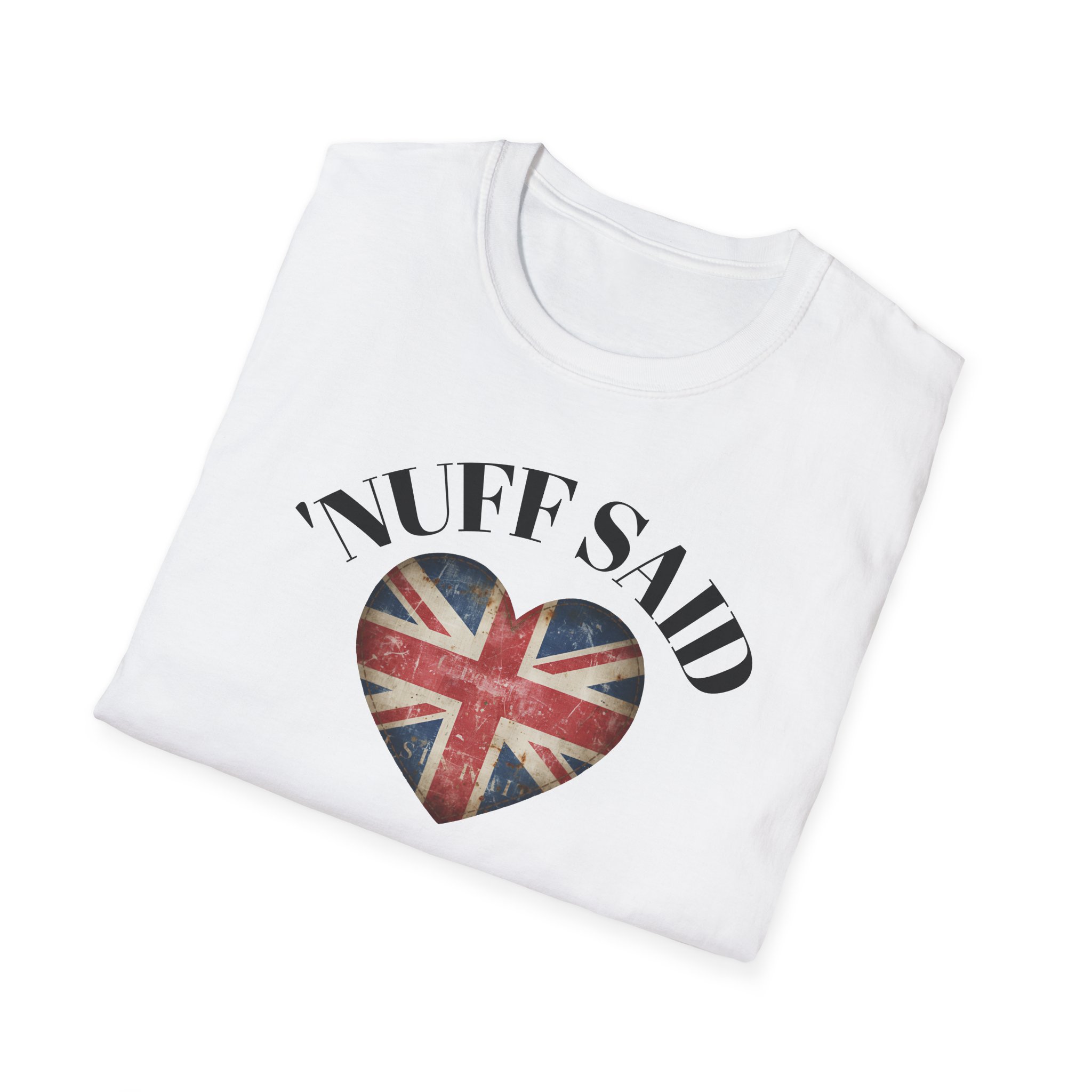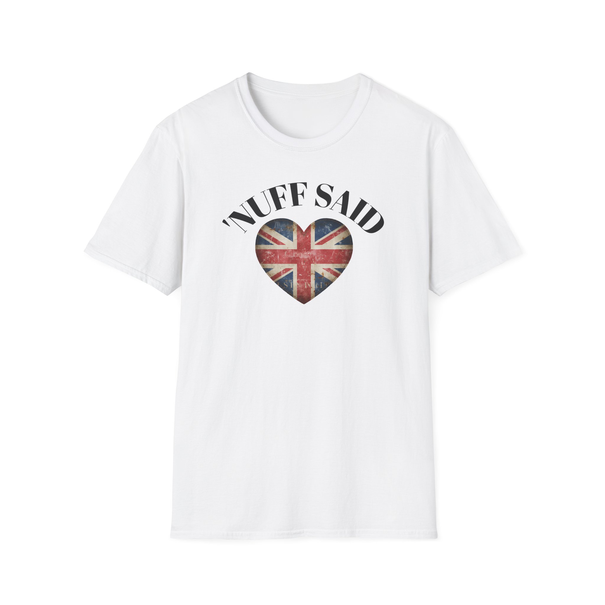 'NUFF SAID T-Shirt with Distressed Union Jack Heart Unite the kingdom