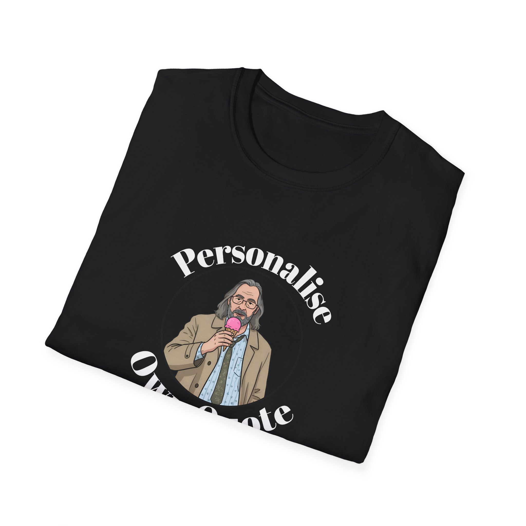 Create your own witty one-liner with this personalised Jackson Lamb caricature T-shirt. Inspired by Slow Horses. Unique, funny, and custom-made for you.