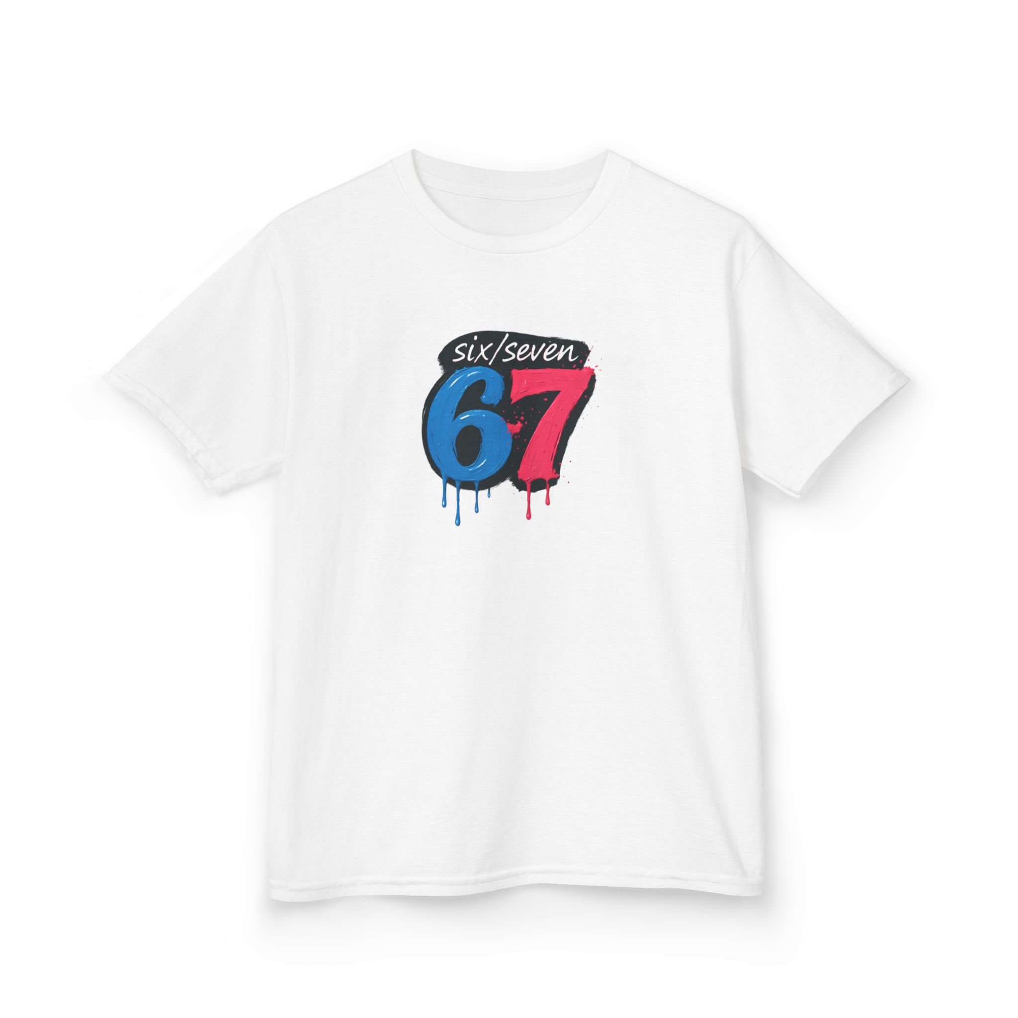 Inspired by the internet's latest obsession, this tee combines the iconic "six/seven" meme with a super cool, vibrant drip effect that's sure to turn heads. Perfect for kids and teens who love to stay on top of trends and express their unique style!