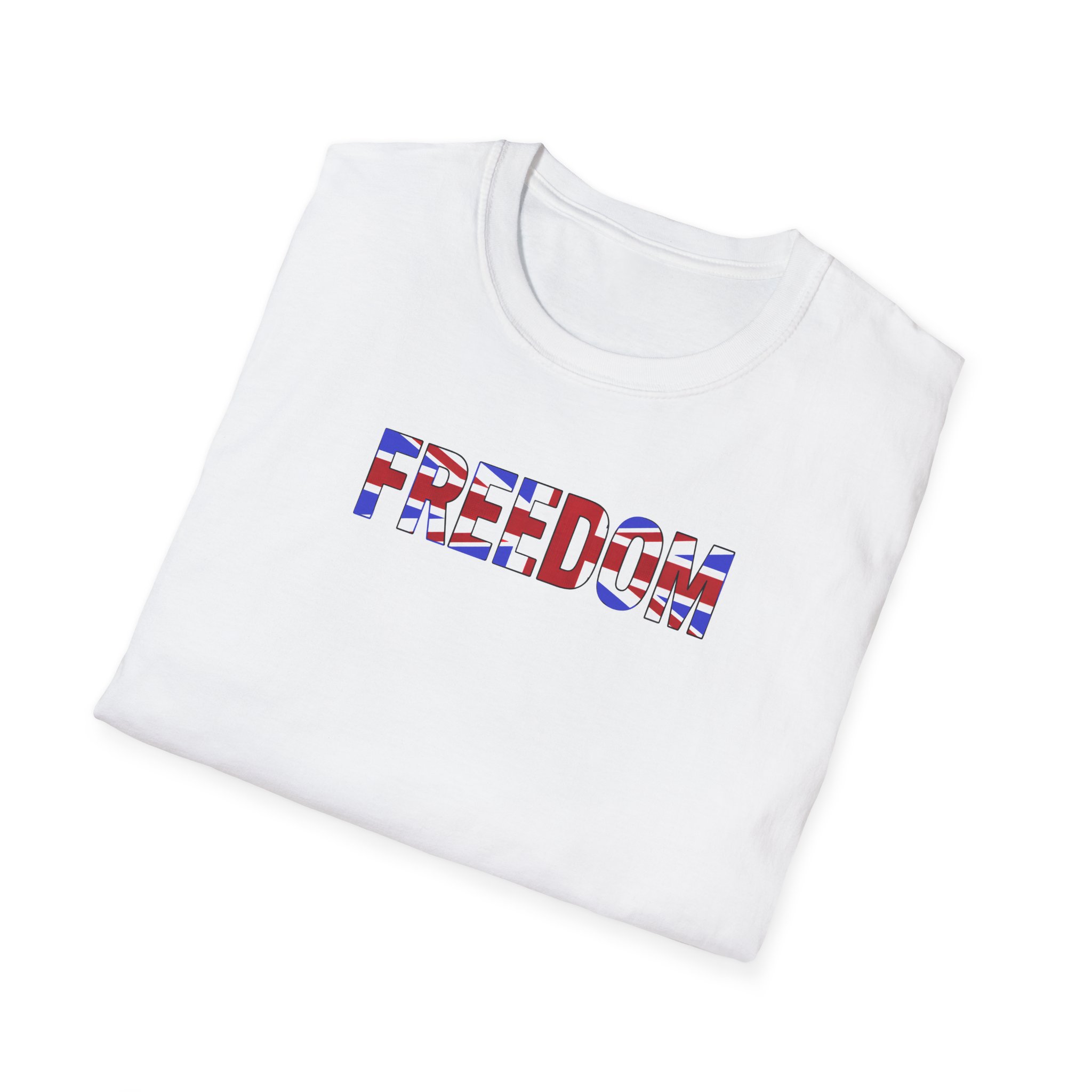 Crafted from 100% ring-spun cotton, this lightweight tee provides unparalleled comfort, making it an ideal choice for daily wear or casual outings. Whether you're lounging at home or heading out with friends, its classic fit and crew neckline offer a versatile style that suits any occasion. The vibrant "FREEDOM" graphic showcases your personality, making it a great gift for freedom lovers and trendsetters alike. For any celebration of liberty and self-expression, this t-shirt invites you to make a statement. Celebrate your unique vibe while enjoying a garment that's not only stylish but also ethically made, appealing to those who care about sustainable fashion.