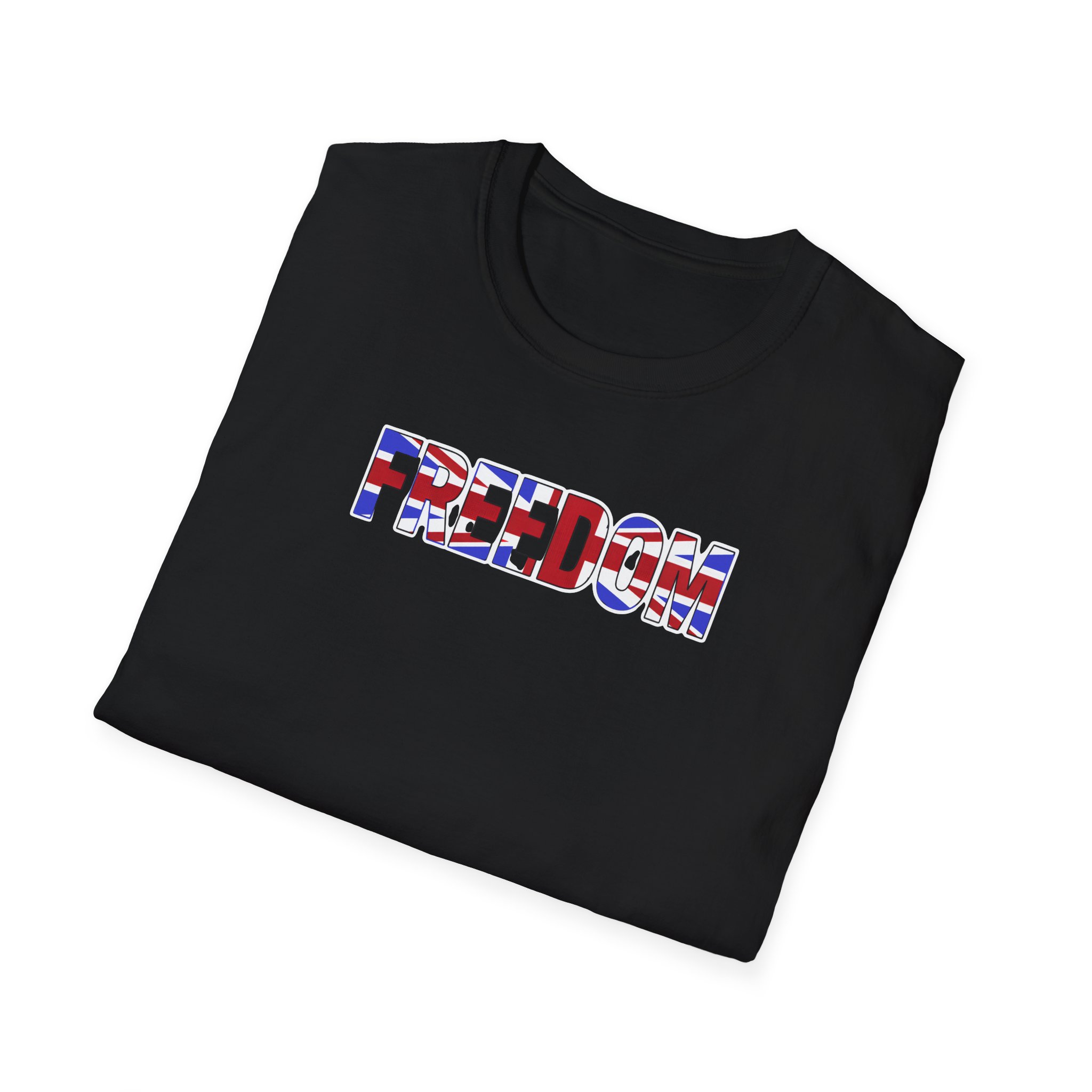 Celebrate individuality and national pride with our Freedom T-Shirt, featuring bold typography filled with the Union Jack UK flag colours. Made from premium 100% cotton, this classic white tee combines comfort and style, making it perfect for everyday wear, festivals, or casual outings. The vibrant red, white, and blue design brings a striking patriotic look, while the lightweight fabric ensures breathability and a relaxed fit.